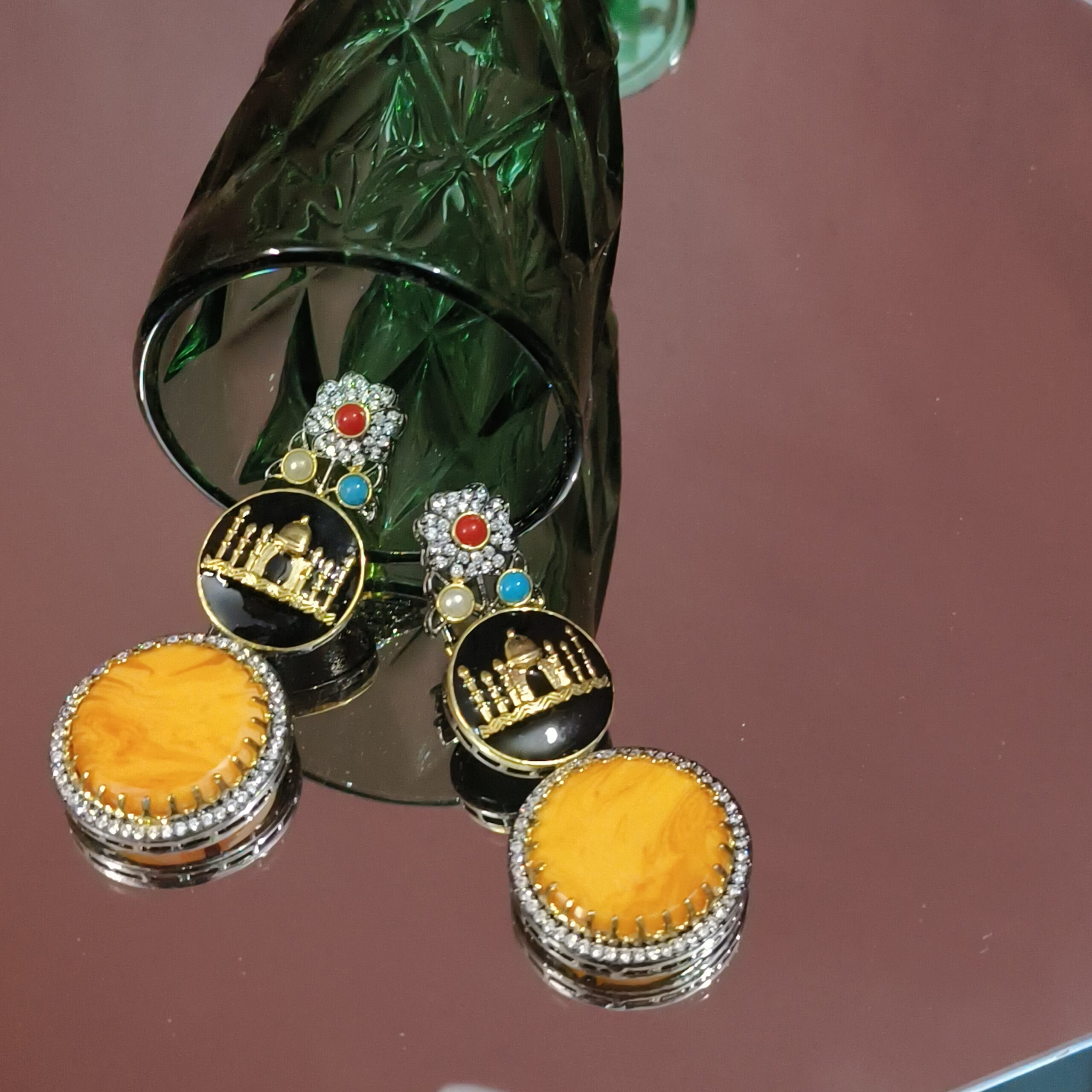 Yellow Taj Mahal Nano-Setting Earrings are a radiant architectural tribute, capturing the golden glow of a sunrise over the world’s most iconic monument. Crafted with a meticulous nano-setting technique, these earrings feature a dense, seamless pavé of canary-yellow stones that trace the majestic curves of the Taj’s domes and minarets. The brilliant yellow palette evokes a sense of regal warmth and optimism, while the microscopic precision of the setting ensures a continuous surface of “liquid fire” that dances with the slightest movement. This isn’t just a piece of jewelry; it is a wearable piece of history, reimagined through a lens of modern luxury and high-definition sparkle